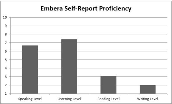On the other hand, when teaching English to the indigenous students of the Embera Chamí community, teachers can use Spanish as tool to clarify concepts to students because, according to the Spanish and Embera self-reported proficiency surveys, the indigenous students reported that Spanish is their dominant language. These students claim to have a greater mastery of the four Spanish language skills (listening, speaking, reading, and writing) and weaknesses in the four Embera language skills. This condition may be a meaningful insight regarding the effect of an L1 upon learning an L3.
