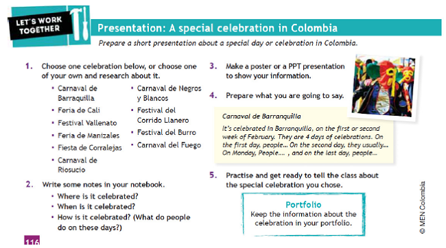 In a similar activity (figure 2), students must research information related to a traditional celebration or holiday, this time specifically in Colombia.