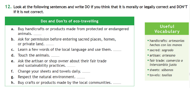 Focus on language: This subtitle indicates activities in which students try to comprehend how language functions. When this subtitle appears, learners are expected to discover the language forms and the rules by themselves with minimal guidance from the teacher. It is an inductive instruction strategy and a much more student-centered approach than more traditional activities.