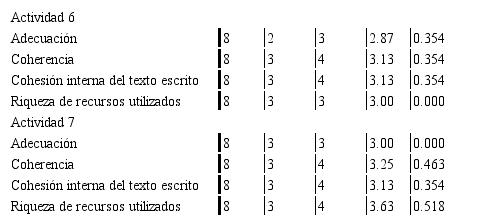 En las primeras actividades los niveles de adecuación, coherencia, cohesión e incluso de enriquecimiento de vocabulario, eran bajos, pero en las actividades finales se apreció lo contrario.