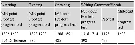 It is relevant to mention that the grammar and vocabulary component improved in both cohorts in the mid-point progress test as the average of the pre-test was 30.1 out of 50, whilst the average in the mid-point progress test was 40.2 in both cohorts. In this regard, Mougeon, Nadasdi and Rehner (2010) and Cammarata and Tedick (2012) referred to the fact that the language that students in immersion programmes acquire has insufficient grammatical accuracy, which is probably because of the indirect exposure to the analysis of the target language during the lessons as contrary to more traditional approaches where grammar is studied deductively.