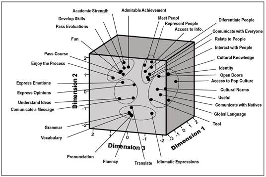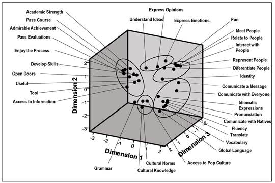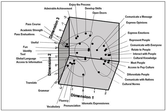 Keywords: card-sorting technique, classroom curriculum, language orientations, multidimensional scaling.