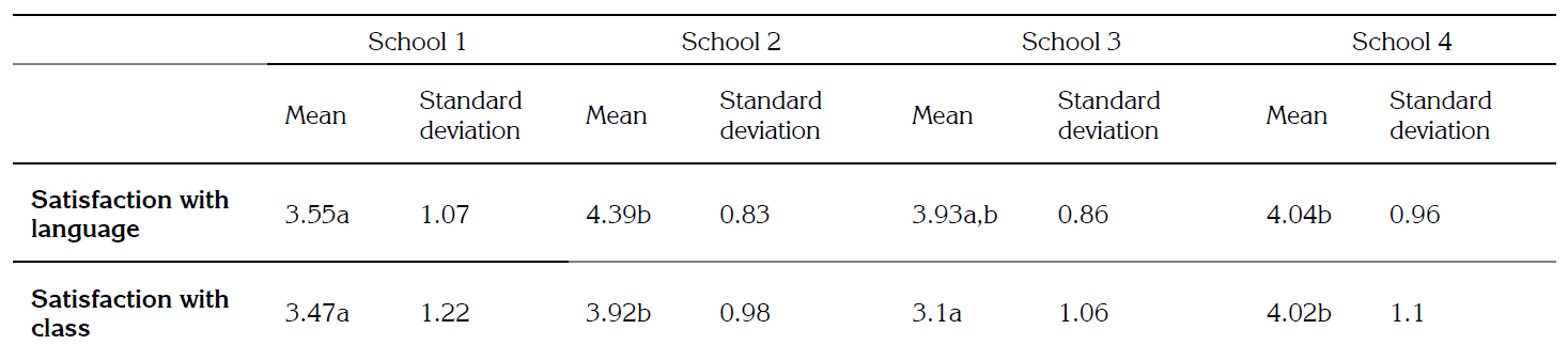 In addition to personal connection with the language, student satisfaction with their English classes and the language itself were also evaluated as seen in Table 1. The students responded using a Likert scale from 1 to 5, with 5 representing high levels of satisfaction. Again, the socio-economic level for the cases studied does not seem to be an explanatory factor for the statistically significant differences between the means for each of the variables. Furthermore, the students generally reported an overall satisfaction with the language and the class but with a slightly higher interest for the language in comparison with the English classes.