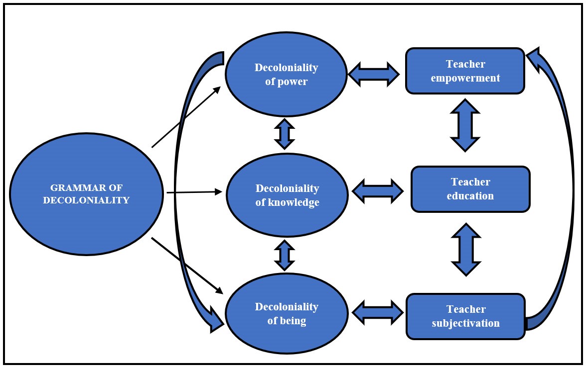 In the first place, I understand the decoloniality of power as an ethical-political commitment to providing teachers with teacher empowerment. As a power process, teacher empowerment allows teachers to problematize their pedagogical and professional knowledge, so that they can take ownership of their practice and improve their reality (Asunción, 2019). To this end, teachers need to learn to acquire and develop attitudes as leaders and researchers, which equip them to innovate their praxis and reconstruct their contexts. As a result, EFL teachers are invited to be actors who