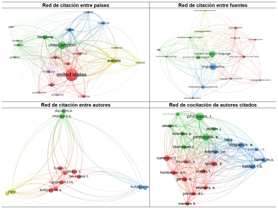 Abstract: A language policy is a means by which the structure, function, use, or acquisition of a language can be impacted. In addition, it is composed of a set of implicit and explicit elements, such as the practices of the language, linguistic beliefs and ideologies, and official documents or regulations. Given that this is a topic of growing interest to the academic and scientific community, this article seeks to review the literature on English teaching language policies in two steps. First, a search is made in the Scopus database to identify trends and theoretical perspectives through the use of bibliometric tools. Then, a selection of articles and doctoral theses is made in order to analyze them and identify their theoretical and methodological approach of the studies in international, Latin American, and Colombian contexts regarding the field under study. The findings suggest four theoretical perspectives on language policy: structural, linguistic imperialism, sociocultural, and multilayer. In Colombia, there is a clear trend towards studies based on the theoretical perspectives of linguistic imperialism and the sociocultural approach, with methodologies based on critical discourse and interpretive analysis.