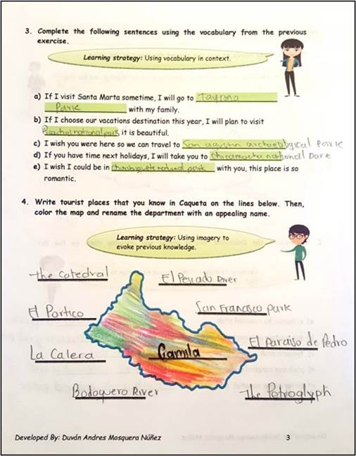 Local Information at the Core of Meaningful Learning. This category evinces the role of local information in the teacher-made workshop for fostering meaningful learning in language learners. Since language and culture are closely connected, learners start comprehending their localized cultural knowledge using the language meaningfully. Acknowledging the socio-cultural theory of Vygotsky (1995), a number of scholars have addressed the significant role of culture in the study of a language (Goldstein, 2015. Gómez, 2015. Pulverness & Tomlinson, 2003. Rico, 2012; among others). Therefore, the references to local information made in the workshop were intentional, aimed at engaging 10th graders in completing the activities in the workshop and fostering meaningful EFL learning. Moreover, this local information serves as the necessary input for learners to achieve meaningful learning. Tomlinson (2010) asserts that learners need to be aware of the importance of using this input so learning can positively take place. Then, localized cultural information, as a valuable and comprehensible input, is at the core of meaningful learning.