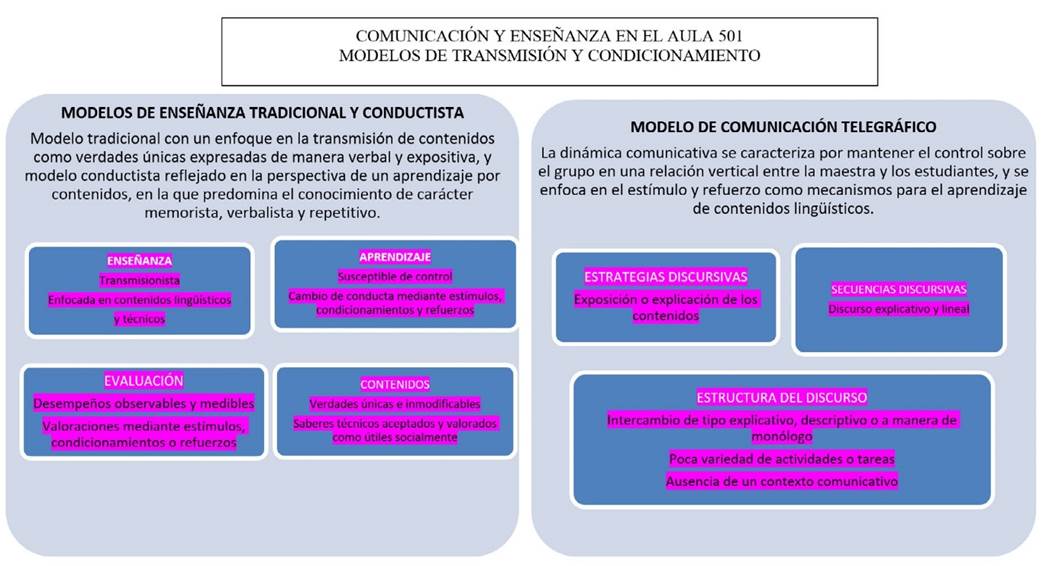 A continuación, la Figura 2 ilustra los modelos de comunicación y enseñanza utilizados por la maestra de acuerdo con las categorías de análisis propuestas: