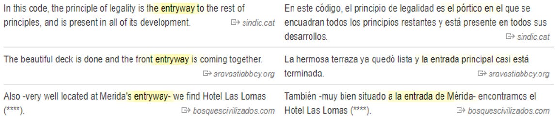 La versión del corpus que recoge el diccionario Linguee en ambos sistemas de lengua (Inglés-Español) es la siguiente: