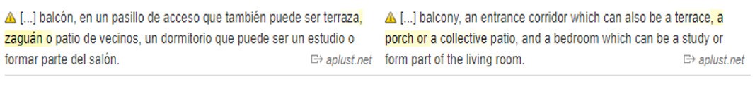 La utilización de Linguee[5] otorgó grandes aportes para el análisis semántico dentro del marco de esta investigación, puesto que ofrece resultados fiables al estar constituido por datos, textos y traducciones ya validadas anteriormente. Es preciso añadir que este diccionario-corpus fue utilizado por los expertos traductores en la examinación de la precisión terminológica, además de ser una herramienta que está compuesta de textos reales producidos por hablantes anglófonos y en la comunidad especializada o semi-especializada de traductores. Por lo tanto, esta herramienta sirve para validar o descartar las transferencias y las interferencias lexicales. En esta línea de importancia instrumental investigativa, Ahmad y Rogers (1994) agregan que las colecciones estructuradas de textos son una valiosa fuente de datos sobre los términos existentes y su comportamiento en un mundo profesional en rápida evolución en el que el conocimiento está creciendo, fusionándose y cambiando rápidamente.