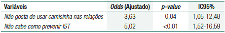 No modelo de regressão logística múltipla, as variáveis que apresentaram associação significativa nas análises bivariadas, mantiveram a forte relação (Tabela 3).