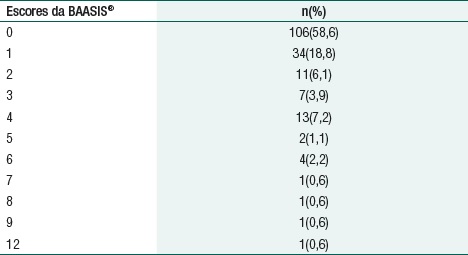 Neste estudo, embora os resultados isolados dos itens avaliados pela BAASIS® apontem para uma adesão de 94,5%, o escore geral mostrou que 41,4% dos pacientes não aderiram a uma ou mais das quatro situações avaliadas, pelo menos nas últimas quatro semanas, representando, assim, uma perda estimada em 3% das doses prescritas.
