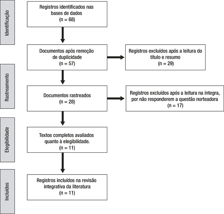 Nesta revisão integrativa foram analisados 11 artigos que atenderam aos critérios estabelecidos pelo protocolo; todos de autoria de enfermeiros e publicados no período entre os anos de 2009 e 2017.