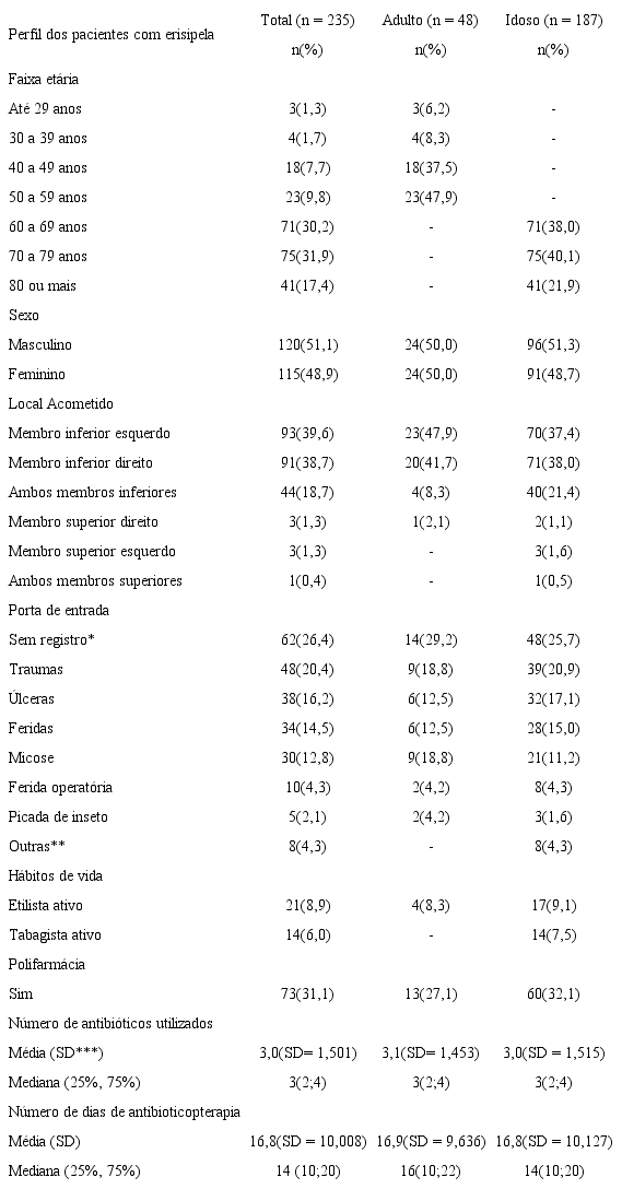Keywords: Erysipelas, Health of the elderly, Wounds and injuries, Recurrence.