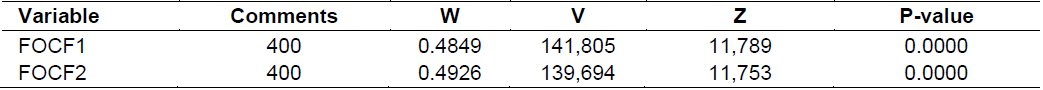 The heterogeneity of companies in the sample indicated the possibility of absence of normality in the variables of interest in this study - something also seen by the descriptive statistics. Therefore, the Shapiro-Wilk test was performed to verify the existence or not of normality in the variables representative of the cash flows. The Shapiro-Wilk test presents as null hypothesis the distribution being normal (SNEDECOR; COCHRAN, 1989) and was considered an alpha of 0.05. Table 2 presents the result for the Shapiro-Wilk test.