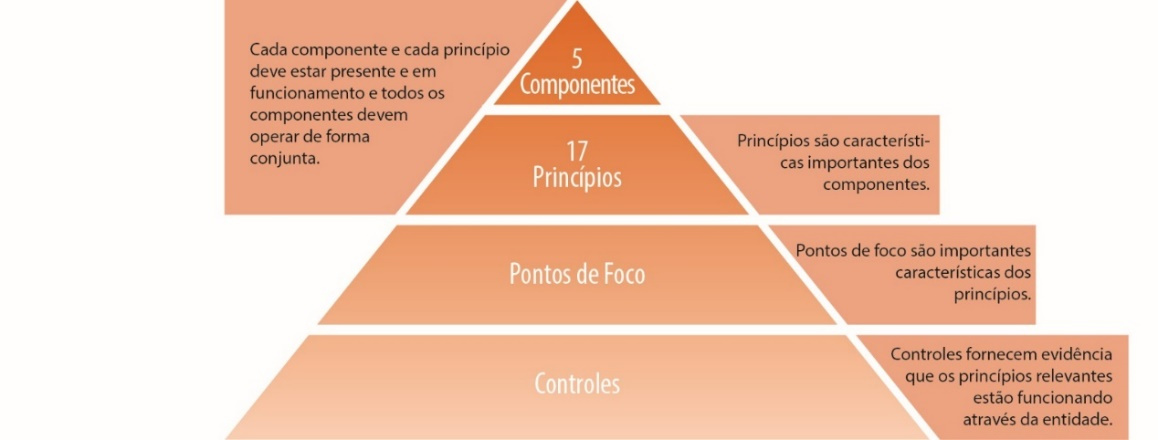 Com a edição do COSO Framework no ano de 2013, alguns conceitos fundamentais foram formalizados, agora denominados princípios, associados a cada um dos 5 componentes, permitindo melhor compreensão e implementação do Sistema de Controle Interno (PROTIVITI, 2014). O Modelo de 2013 apresenta 17 princípios agrupados aos 5 componentes (Figura 2 e Quadro2), decomposto em77pontos de foco, visando auxiliar à administração na detecção da presença desses princípios (COSO, 2013).