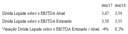 Levando-se em consideração as informações disponíveis nas notas explicativas da empresa, o valor presente líquido dos contratos em operação a serem registrados em primeiro de janeiro somam o montante de R$ 126.958 milhões em 2017 e R$ 148.144 milhões em 2016. Os valores foram calculados considerando o valor das despesas de leasing operacional incorridas no ano, o fluxo de pagamento de leasing operacional informado em nota explicativa, do qual foram descontados o montante referente a contratos com atividades operacionais ainda não iniciadas. O desconto foi feito anualmente na mesma proporção do valor do fluxo de pagamento do ano com relação ao total do fluxo de pagamentos.
