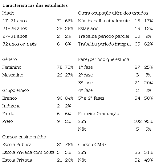 A Tabela 2 expõe as características demográficas dos estudantes que participaram da pesquisa.