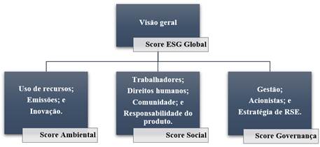 Objetivando investigar a relação da responsabilidade social corporativa, utilizou-se como proxies os scores de ESG da Thomson Reuters Eikon© , que avaliam o desempenho das entidades nas temáticas relacionadas às ações de RSC de acordo com a metodologia de observação das práticas de questões classificadas em 4 dimensões, conforme exemplificado na figura 1.