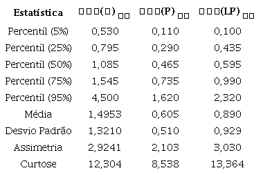 Finalmente, realizou-se uma análise de assimetria e curtose das distribuições das variáveis dependentes. Tais resultados são descritos na Tabela 3. Pelos índices obtidos, é possível perceber que todas as distribuições de endividamento são assimétricas positivas e leptocúrticas. O excesso destes índices em comparação à distribuição normal é corroborado com o teste de Jarque e Bera (1980), que indica fortemente a rejeição da hipótese nula de normalidade a um nível de significância de 1%. Tal contexto corrobora com a utilização da RQ para a obtenção das estimativas.