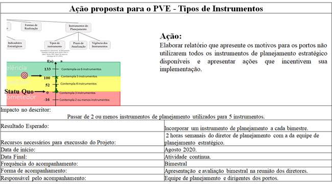 O primeiro passo seria identificar como aperfeiçoar o desempenho do Porto naqueles indicadores que, atualmente, ele impacta em nível de desempenho comprometedor (Tipos de Instrumentos - I13; Incentivos - I26), ou que está em processo emergente para o nível competitivo (Periodicidade do Planejamento - I8; Vigência dos Instrumentos - I5; Gestão da Movimentação e Volume - I21; Indicadores de Lucratividade - 23; Investimentos Lucrativos - I25) e interferem, de forma negativa, em seu desempenho e, consequentemente, no da Holding.