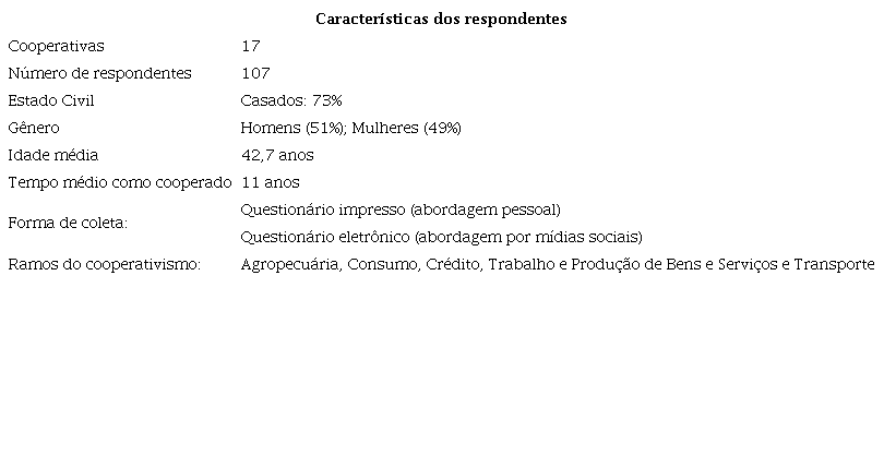 Método: Para coletar os dados foi aplicado um questionário com associados de cooperativas do Estado de Santa Catarina. Foram coletadas 107 respostas em 17 cooperativas diferentes. Os dados foram analisados por meio do teste Mann-Whitney e de modelagem de equações estruturais (PLS/SEM).