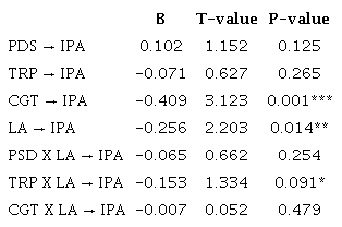 Em relação a idade, verifica-se que a CGT afeta negativamente a IPA (i) e que os laços de amizade afetam negativamente a participação das assembleias (ii). Em relação ao tempo de cooperado, de até 10 anos de associação, verificou-se que: (i) o efeito do CGT no IPA é negativo e significativo, e a (ii) moderação do LA na relação entre a TRP e IPA é negativa significativa. Para os cooperados com mais de 10 anos de associação confirmou-se que: (i) a TRP está negativamente relacionada com IPA, e (ii) a moderação negativa do LA na relação entre PDS e IPA foi significativa.