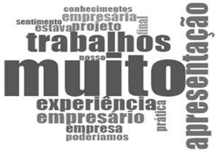 A palavra mais frequente foi ‘muito’ e seus derivados, utilizados com o intuito de descrever o quão intensa foi a atividade para os alunos. Nesse sentido, observou-se que o termo foi empregado para qualificar a atividade e demonstrar um sentimento de satisfação como mostram os seguintes trechos: “muito enriquecedor” (Aluno 1), “muito gratificante participar” (Aluno 2); “[...] contribuiu muito para o meu desenvolvimento acadêmico e profissional” (Aluno 9); “Foi muito gratificante ver o resultado final ser tão bem avaliado pela empresária.” (Aluno 30); “Foi a primeira vez que tive essa experiência dentro do curso de Contábeis. Com certeza foi uma experiência enriquecedora, adoraria ver mais disciplinas com trabalhos nesse modelo. Me sinto mais preparada para atuar como contadora.” (Aluno 107). Outras palavras mencionadas foram: ‘experiência’, descrita como desafiadora e gratificante para a maioria; ‘relevância do contato com os empresários’ durante a experiência; ‘desenvolvimento de competências’; e ‘habilidades acadêmicas e técnicas’, como apontado por Britt (2012), Astin et al. (2000) e Celio et al. (2011).