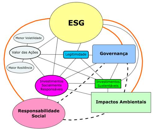 Alencar et al. (2022) acreditam que isso ocorre pelo fato de que quando uma empresa adota uma conduta socialmente responsável, pautada nos pilares da governança corporativa e da sustentabilidade, tende a gerar mais retornos a longo prazo, se portando de forma mais bem preparada para enfrentar riscos econômicos e socioambientais.