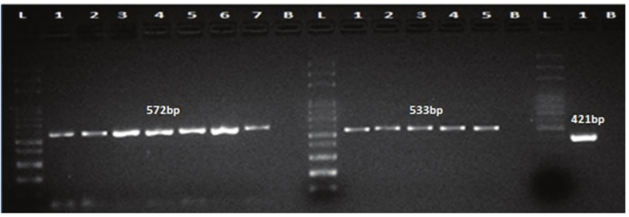 In the present study, all samples were sensitive to Clindamycin and only 1 sample (5%) presented an intermediate resistance profile. In the study of (Silva et al., 2012) regarding the colonization by S. aureus in the nursing staff from a teaching hospital in Pernambuco, it was reported that 11.9% of isolates were resistant to Clindamycin, differing from the results presented in this current paper. On the other hand, a study by Santos et al. (2007), which evaluated Staphylococcus aureus hospital importance, showed a sensitivity profile of 85-100% for Clindamycin, being similar to the results described in this study. Regarding to the evaluation of genotypic profile, 2 samples (10%) were positive for the mecA and ermC gene, characterizing a multidrug resistance profile. Coelho et al. (2007), conducted a mapping of resistance and detection of mecA gene profile of Staphylococcus aureus isolated from humans, which resulted in 12 (43%) of the samples with the presence of the mecA resistance gene out of 28 samples evaluated, thus indicating a higher potential.
