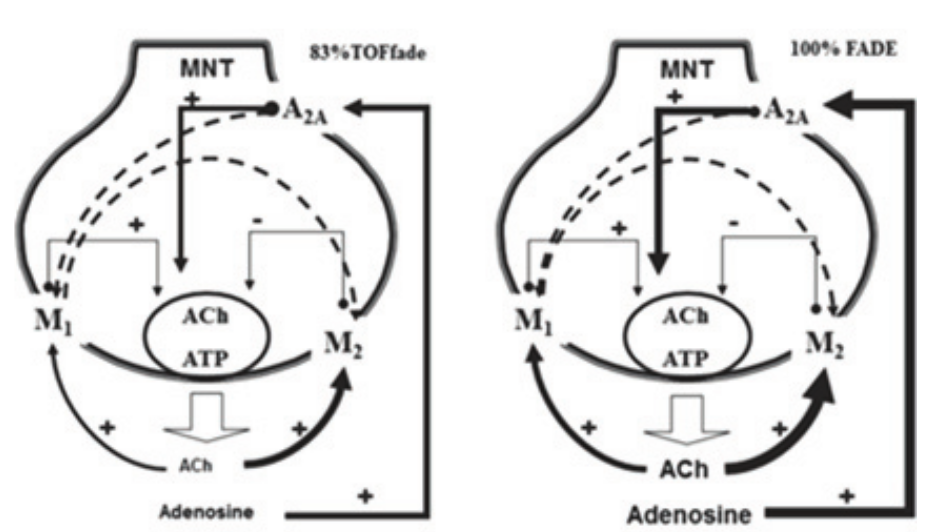 Keywords: tetanic fade, adenosine, muscarinic receptors, train-of-four, neuromuscular blocker.