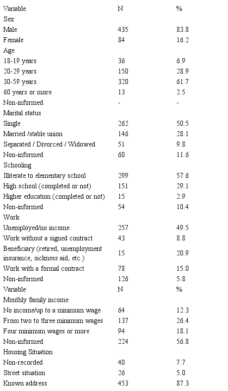 All this movement brought the need to know the profile of the users of this service, especially the users of alcohol and other drugs that have social and vulnerability characteristics that are often unknown. These characteristics should be considered in the context of the planning of health actions and the construction of the singular therapeutic project (PTS).