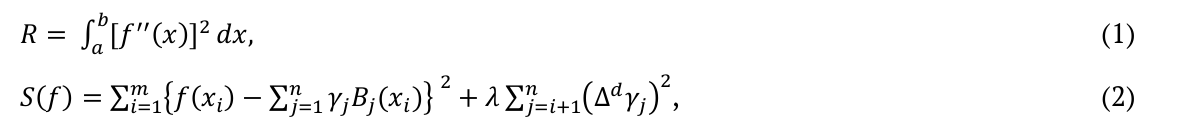 in which [a,b] is the study interval, d is the order of the L difference operator for, B is the regression basis function, λ is the control parameter of the smoothing, and is a function that composes B-spline sums.