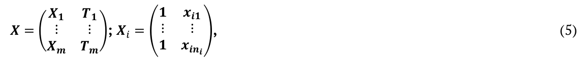 in which Ti is a matrix that indicates if the i-th subject receives the k-th treatment.