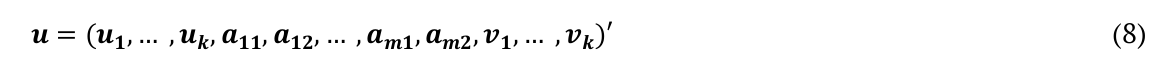 The vector of random effects is expressed by: