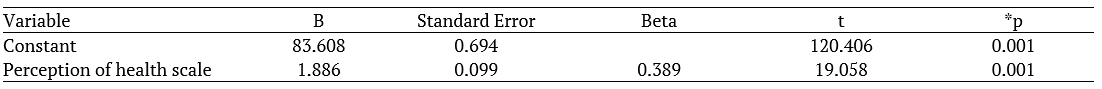 As a result of simple linear regression analysis, a significant correlation was found between Family Role Performance and Perception of Health Scale (R = 0.389; R2 = 0.151; p < 0.01). According to the regression analysis, it was found that family role performance affected perception of health at the rate of 15.1% (Table 4).