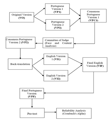 The process of translating and culturally adapting scales is important for comparing studies from different countries as it enables a better understanding and grasp of the dimension of the phenomena assessed (Falcão, Cicinelli, & Ferraz, 2003). However, the quality of the scale is not guaranteed only by the linguistic translation of the items, as cultural adaptation is necessary to preserve the conceptual meaning of the scale. The translation and cultural adaptation of a scale requires specific methodology, maintaining the sense and quality of the original scale, reducing the chances of biased translations (Beaton,Bombardier, Guillemin, & Ferraz, 2000).