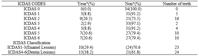 It is presented status of students’ teeth according to ICDAS code in Table 3.