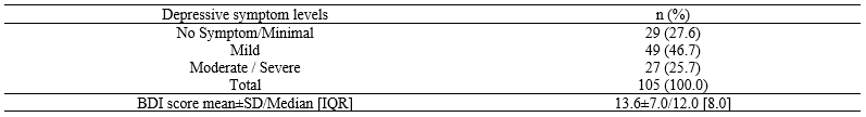 Depressive symptom levels of the participants based on BDI scores were determined as in Table 1.