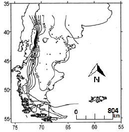 Precipitation rates for the region are expressed in Figure 1 corresponding to approximately 200 mm annually in the region of the central plateaus where desertification rates are more accentuated. There isalso the incidence of cold winds predominantly from the west, unlike the part near the Andes Mountain Range where rainfall levels increase presenting an annual average close to 400 and 2,000 mm, at the most.