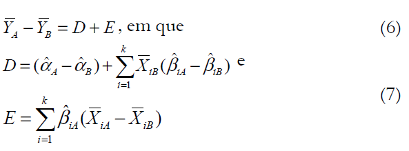 Portanto, a diferença entre a remuneração de homens e de mulheres pode ser decomposta mediante as Equações 6 e 7: