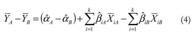 Subtrai-se uma equação da outra, a fim de calcular a diferença nas médias do logaritmo do rendimento entre os dois grupos, conforme a Equação 4: