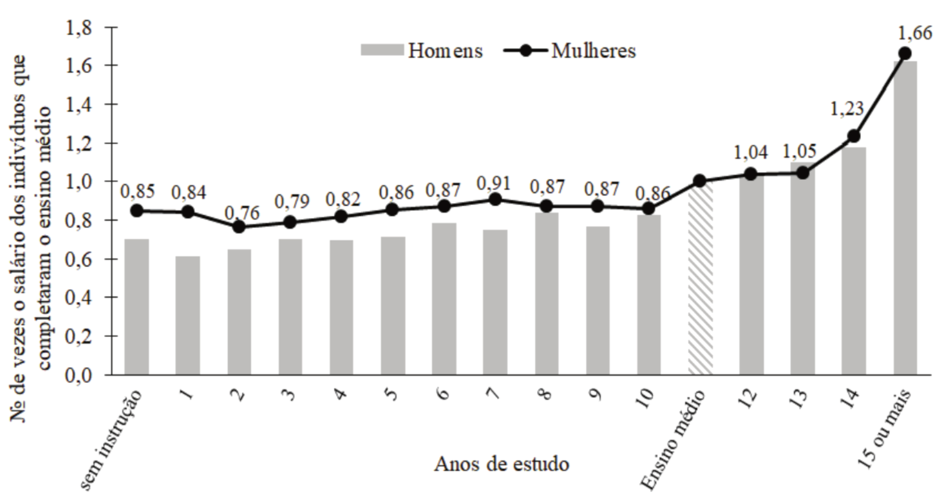 A escolaridade, contudo, não ajuda a explicar a vantagem salarial masculina, pois as mulheres possuem uma média de anos de estudo formal concluídos com sucesso superior à dos homens: 8,0 contra 7,6 anos, considerando pessoas de 10 anos ou mais de idade (IBGE, 2016). As evidências sugerem, inclusive, que se os salários fossem estabelecidos apenas com base nos atributos produtivos observáveis dos trabalhadores, as mulheres, no Brasil, ganhariam, em média, mais que os homens (Leme & Wajnman, 2000; Giuberti & Menezes-Filho, 2005; Scorzafave & Pazello, 2007). Não há, no entanto, estudo que permita estender essas conclusões ao setor público brasileiro.