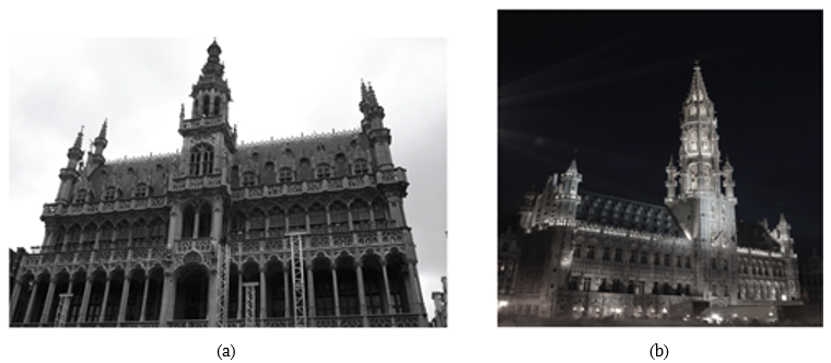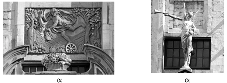 La Grote Markt, actualmente considerada patrimonio de la humanidad tiene, entre algunas estructuras de importancia política en la plaza, la Maison du Roi (Musée de la ville de Bruxelles o la Casa del Rey y el Hotel de Ville (ayuntamiento or Town Hall) (Figura 6a y b), representando la dinámica entre las virtudes y los niveles de poder.