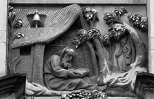 Muy interesante es que en la ciudad de Bruselas-Bélgica, por un lado tenemos imágenes del ángel de la Victoria en casi toda parte pública. El ángel está en museos, parques, plazas, etc. Por otro lado, efectivamente la diosa Fortuna, apenas aparece en un punto de la ciudad, que es en la Grote Markt (Grand Plaza), donde curiosamente comparte el espacio con otras estatuas y monumentos que nos sugieren algo más allá que una mera coincidencia. Muestra una lucha de valores, y en esta plaza, la sugerencia de que los gobiernos que se fiaron en la Fortuna cayeron. Las estatuas exponen lecciones y valores necesarios para los gobernantes, como organización, planificación y conocimiento. Por eso mismo, tras el bombardeo por las tropas de Luis XIV, en el siglo XIX la imagen de un ermitaño leyendo (Otrębski, 2014) (Figura 4), que ya exista, fue puesta cerca de la Fortuna (Figura 8a), como si estuviera ignorándola.