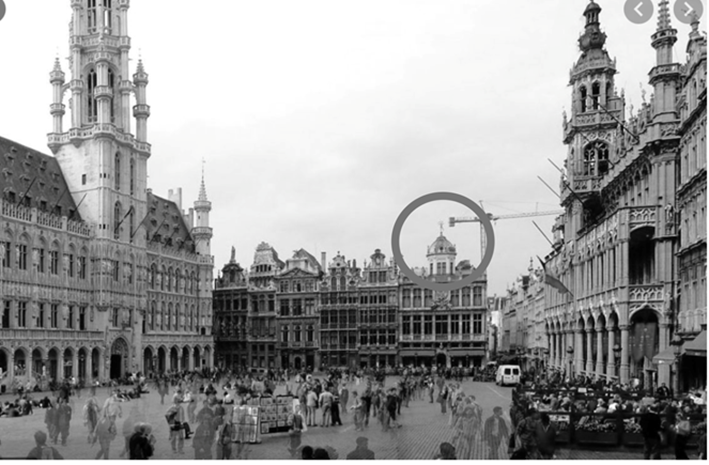BonV. (2019). Grote markt. Dentro del círculo dibujado está la estatua de la diosa Fortuna (Fotografía). Retrieved on December 09, 2021 from https://www.bonv.se/grand-place-grote-markt-in-brussels/