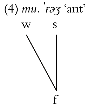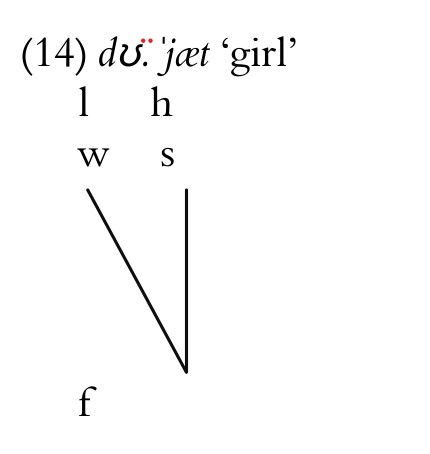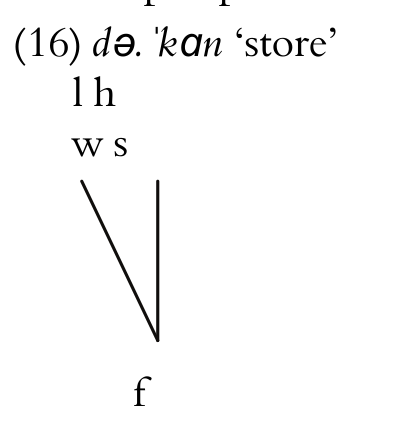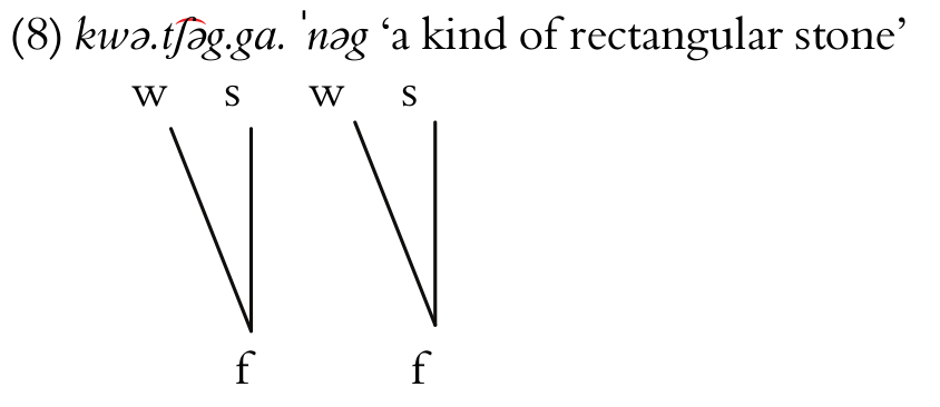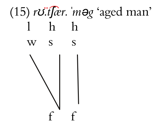 As the strong stress is always realized on the right side of the word, the construction of the foot seems to be a right-to-left process.