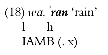 _ That iambic languages often lengthen stressed syllables in branching feet (iambic lengthening, or IL), turning (͜͜ ͜´ ) into (͜ —´ ). Trochaic languages do not.