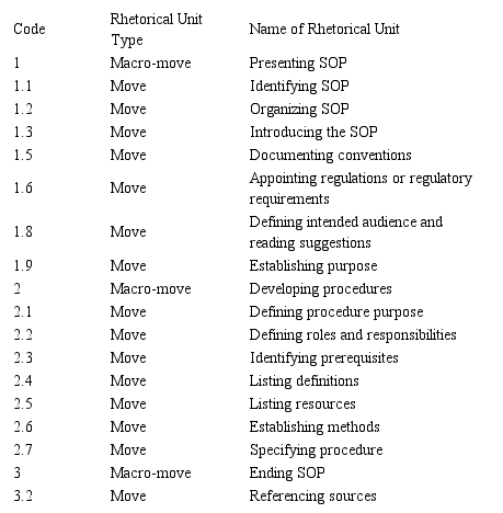 · Move 1: Identifying the SOP. This move includes identifying the organization authoring the SOP, including the author(s), company, location, filiation, name, and verbal/nonverbal identification.