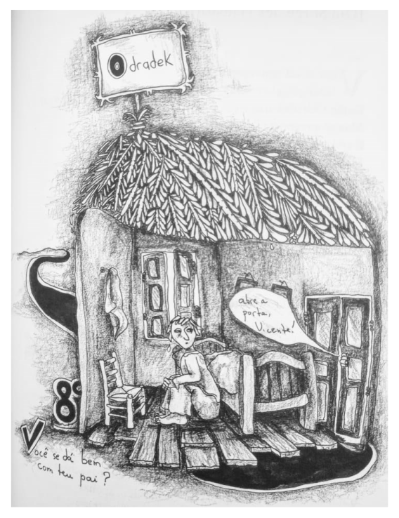Em Odradek (Die Sorge des Hausvaters), no canto esquerdo inferior da imagem, lê-se: “Você se dá bem com o teu pai?”. Essa é também a primeira frase do conto, mas o leitor ainda não chegou nela (Figura 2).