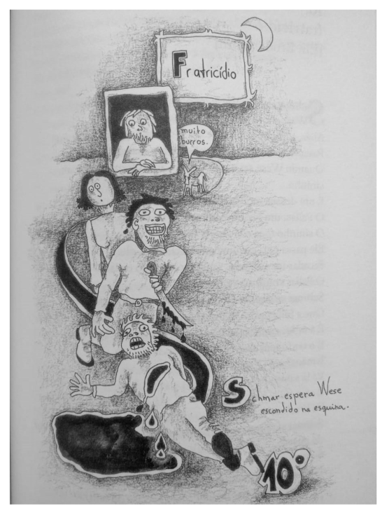 Vejamos o caso de Fratricídio (Ein Brudermord), um dos contos mais conhecidos de Kafka. A imagem, como podemos conferir a seguir, traz os personagens principais, Schmar, Wese, Pallas e Júlia (Figura 3).